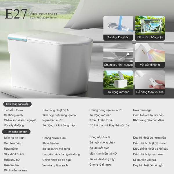 - Tên sản phẩm: Bồn cầu thông minh E27