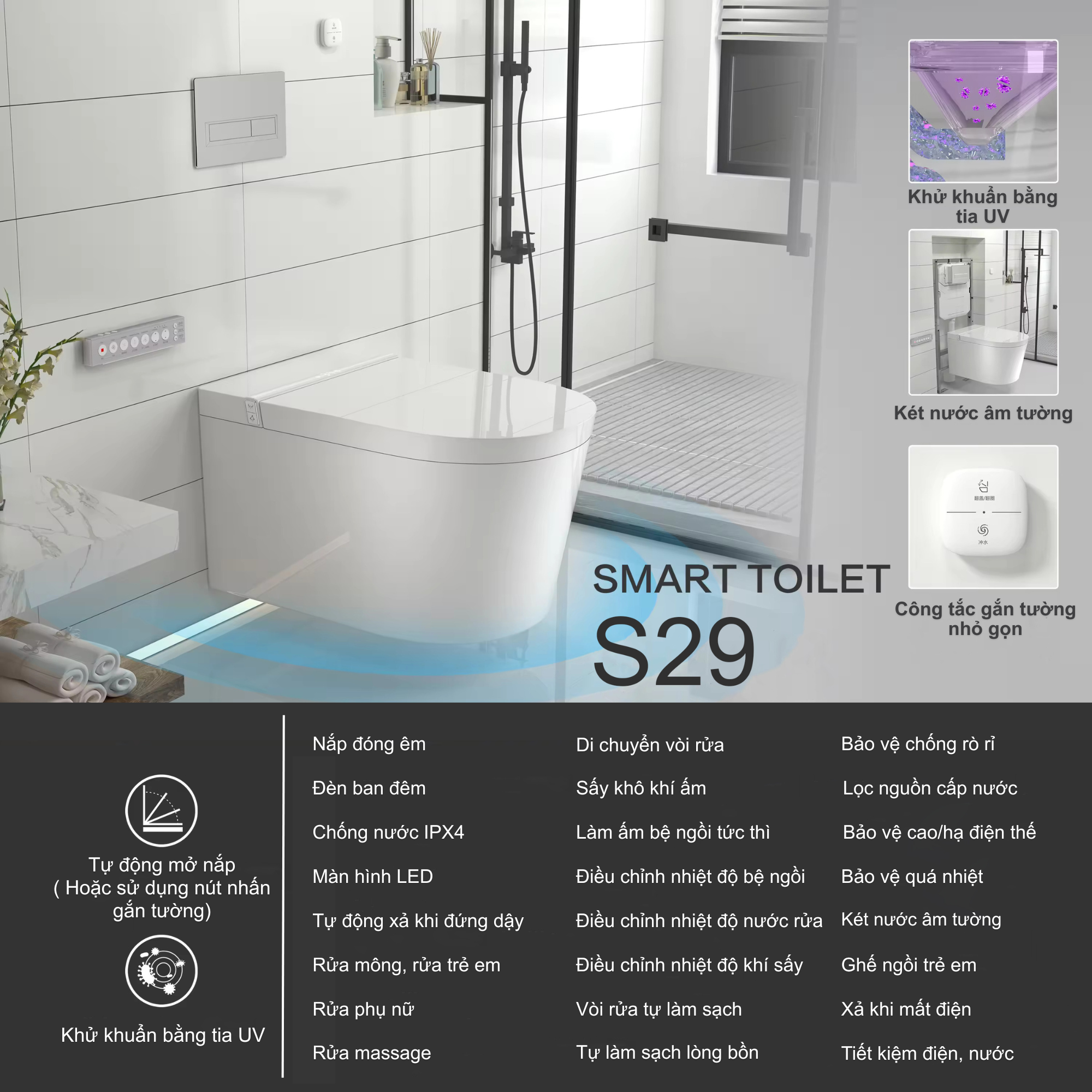- Tên sản phẩm: Bồn cầu treo tường thông minh S29