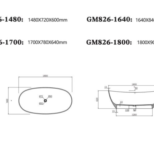 Tên sản phẩm: Bồn tắm đá nhân tạo cao cấp GM826