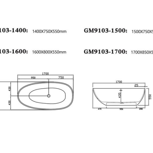 Tên sản phẩm: Bồn tắm đá nhân tạo cao cấp GM9103
