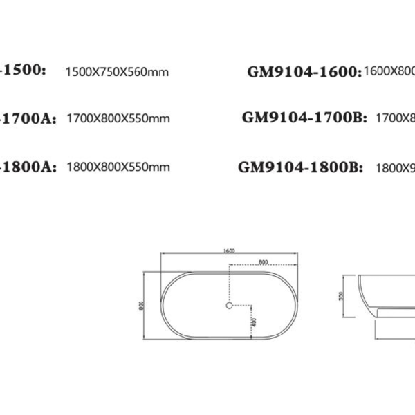 Tên sản phẩm: Bồn tắm đá nhân tạo cao cấp GM9104