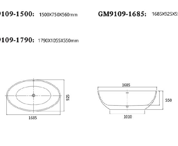Tên sản phẩm: Bồn tắm đá nhân tạo cao cấp GM9109